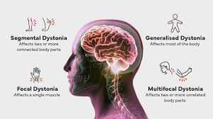 Dystonia is a movement disorder that can affect various parts of the body, including the neck (cervical dystonia), hands, eyelids, vocal cords, or even the entire body. The symptoms vary in severity and may include: